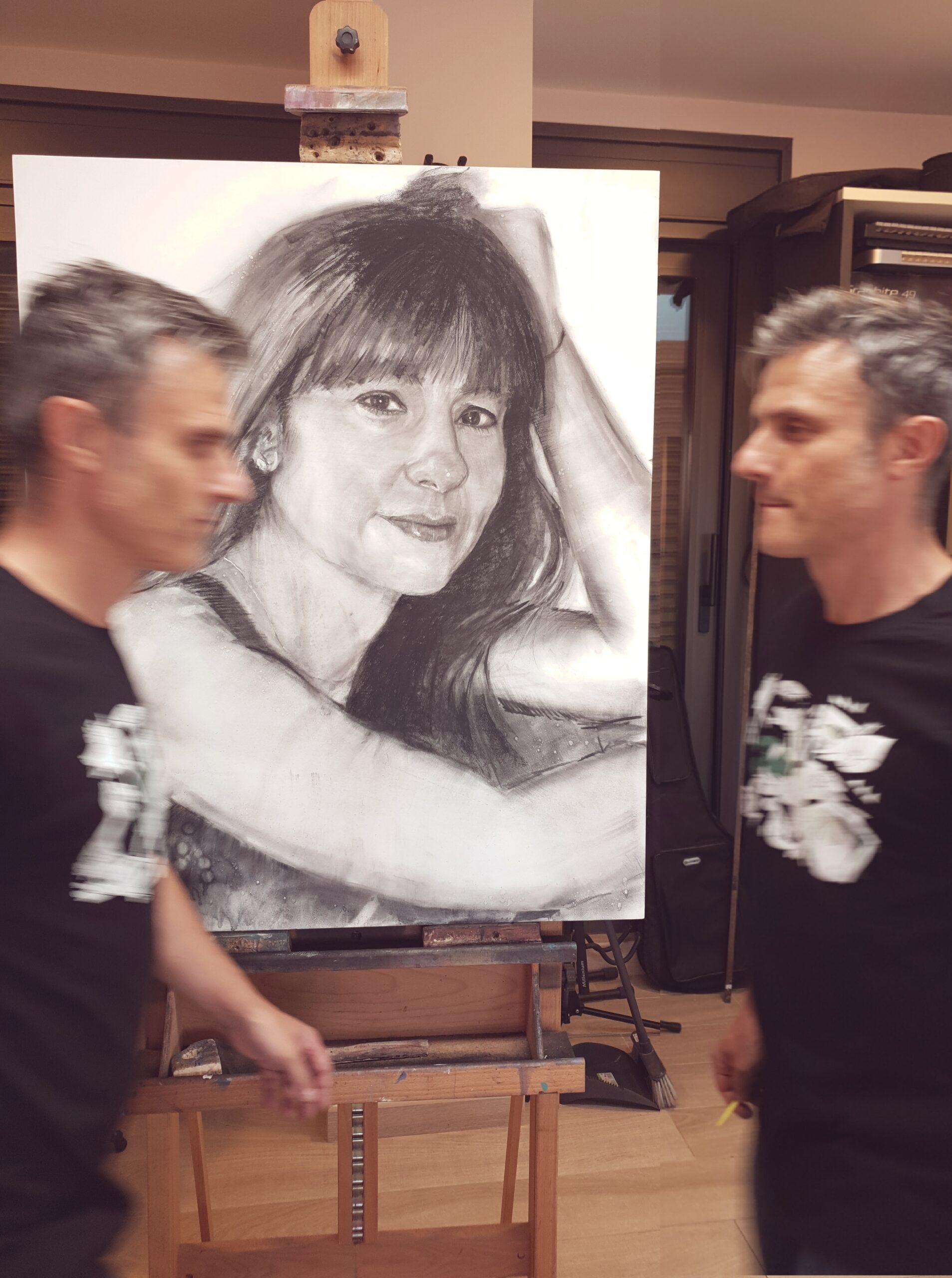Each portrait is an attempt to capture the essence of that unique moment in which no words are needed. I love to focus on the physical resemblance, but at the same time include those personal traits that make each of us unique, all surrounded by a diffuse, abstract and ethereal atmosphere. I tend to play with light and shadow, taking advantage of all the power of charcoal to add depth and realism, giving life to every crease, every gesture.